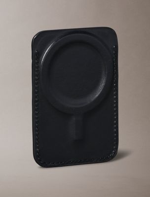 A sleek card case designed to attach seamlessly to your phone—crafted from soft nappa leather and embossed with an emblem logo pattern. Finished with RFID-blocking technology to keep your cards secure and close at hand.