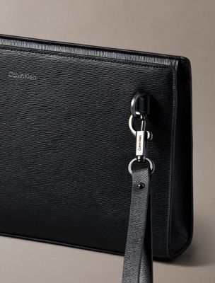 Saffiano Emblem Zip Pouch with Handle